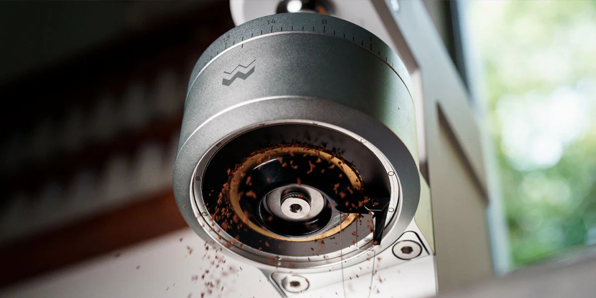 The burrs and mount define the width of the Key, so it takes up a fraction of the space required by grinders with burrs only a fraction of the size.